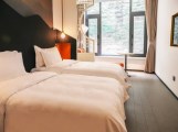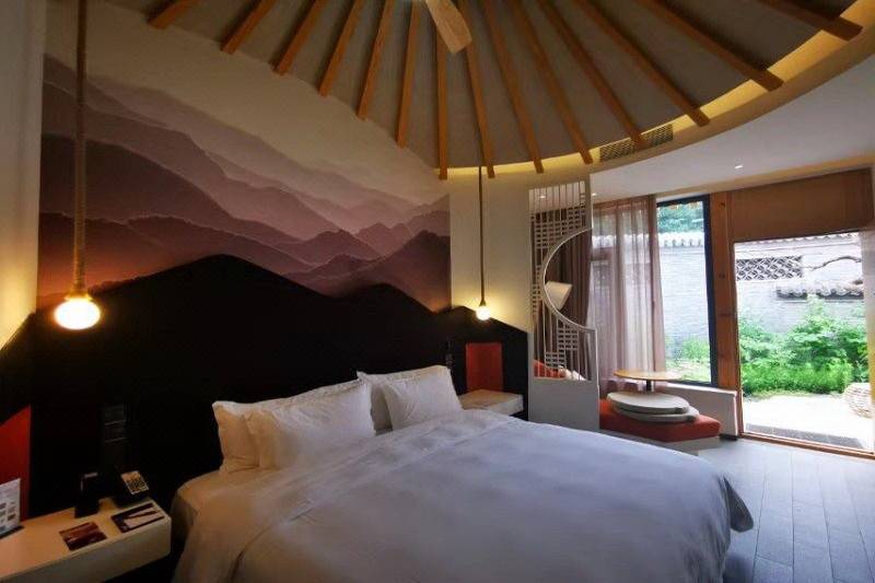 金山嶺長城大酒店身處長城腳下,群山環(huán)抱之中,四周青山環(huán)繞,置身酒店便可一覽長城之雄奇,結(jié)合了先進(jìn)前沿的設(shè)計(jì)感與中國傳統(tǒng)文化特色,新潮的時(shí)尚與古老的歷史在這里完美融合。全天開放的餐廳,擁有110個(gè)座位,以及3個(gè)包間。提供早餐、午餐及晚餐多種選擇。200間“眠繭”(客房及套房)以崇山峻嶺為設(shè)計(jì)靈感,融合了老北京四合院元素,賓客在這里既可以享受到便捷現(xiàn)代的各項(xiàng)設(shè)施,游覽到雄偉壯麗的長城景象,還可以在休息室享受獨(dú)居一角的安逸。83間山谷房、88間庭院房、9間專享庭院房。大床房/雙床房可供選擇,配備座椅的大型共享庭院,2/3間房共享一個(gè)庭院,適合朋友、家人同游時(shí)居住。